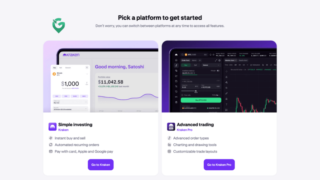 - Start with the simple interface, then switch to Kraken Pro when ready